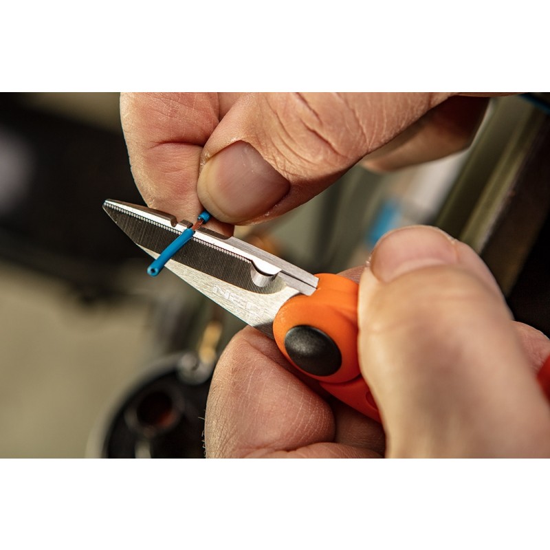 Nożyce do kabli i izolacji NEO (nr ref. 01-511) o wymiarze 140 mm, długość ostrza 45 mm. Ząbkowane laserowo ostrza zabezpieczone przed wyślizgiwaniem. Posiada dwa nacięcia służące do szybkiego odizolowywania kabli 0.7 i 1.0 mm2.